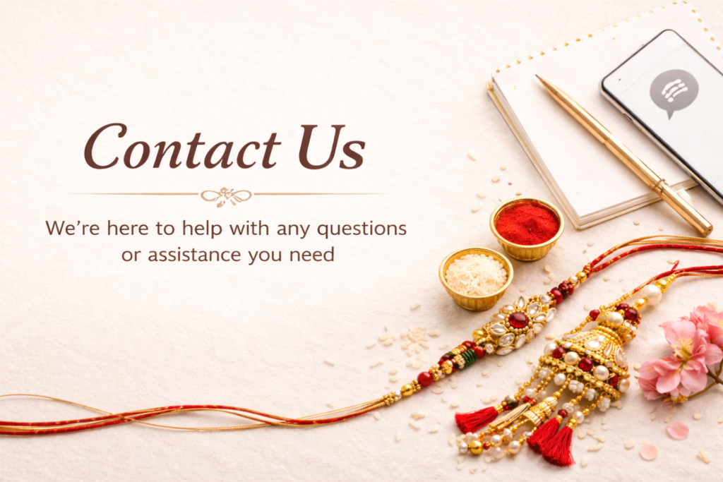 Feel free to contact us if you have any questions about our rakhi collections, orders, or services. Our team is always ready to help you. If you have any questions, need help with your order, or want more information about our rakhi collections, please contact us using the details below.