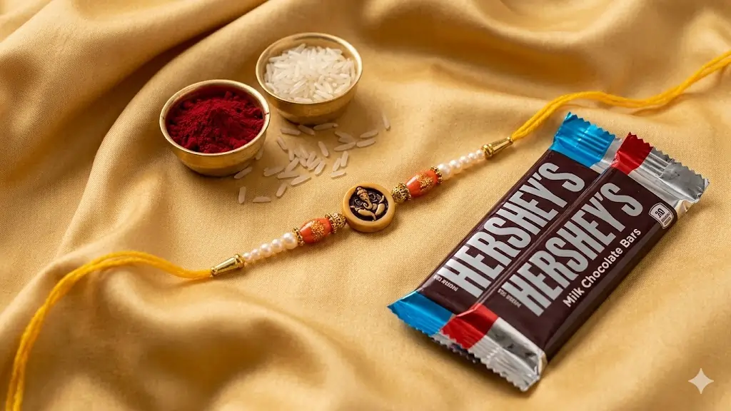 Celebrate the divine bond of Raksha Bandhan with this auspicious Ganesh Rakhi Chocolate Combo with Roli & Chawal, specially curated to send rakhi to USA. Featuring a beautifully designed Lord Ganesh rakhi, this set symbolizes blessings, protection, and positivity for your brother.